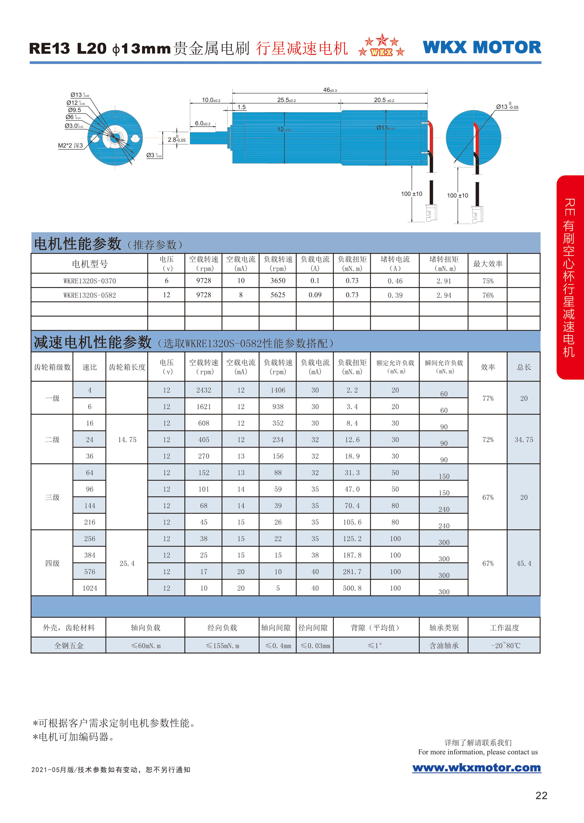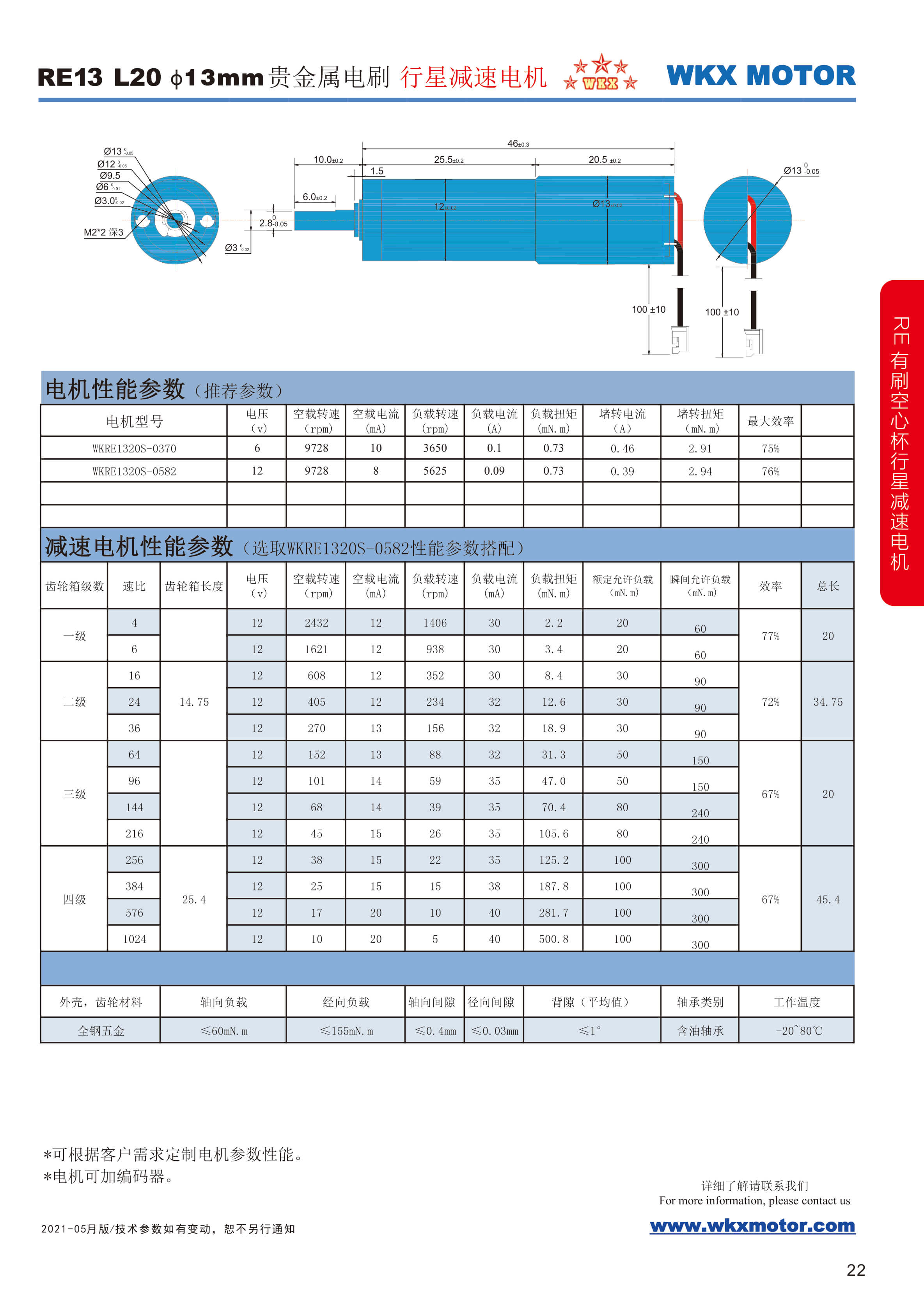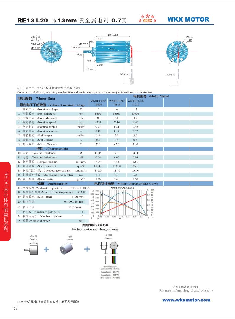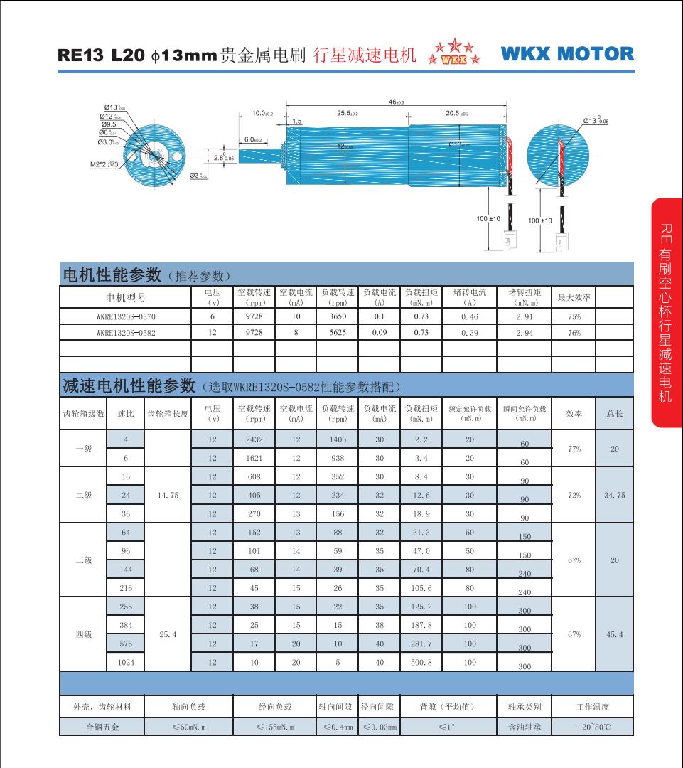 名義電壓: 6...12 V 轉矩上至: 0.92 mNm 空載轉速: 10600 min?1 堵轉轉矩: 2.9 mNm 外徑: 13 mm 長度: 20 mm